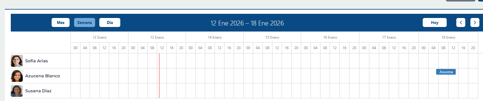Una vez generado la gráfica, se pueden mostrar los datos para un periodo de un mes, una semana o mostrar un Time Line que muestra a todo el conjunto de empleados seleccionados su tabla de jornada horaria en formato gráfico.